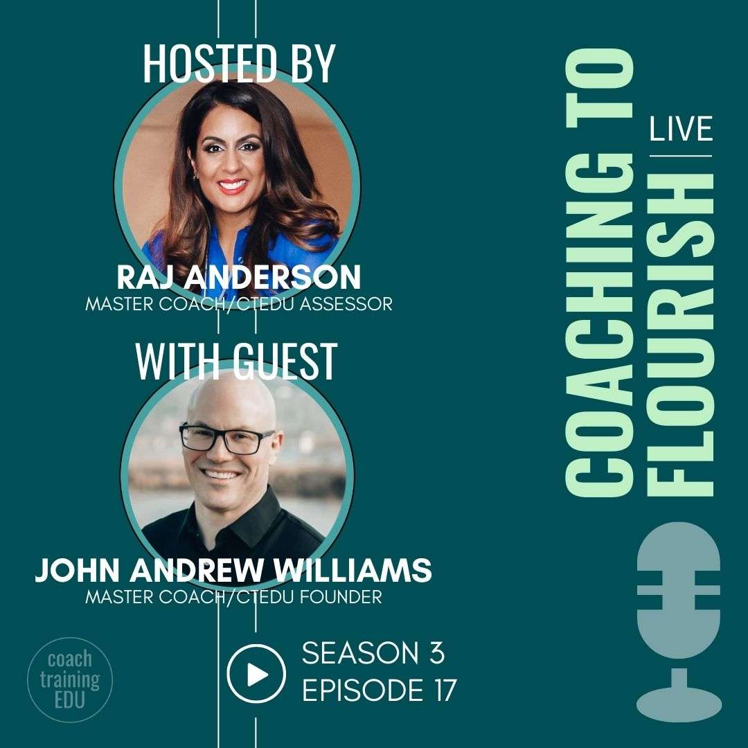 [Raj Anderson] We’re live! All right. Welcome everyone to the Coaching to Flourish podcast, and I’m your host, Raj Anderson, executive life coach and coach Assessor. And I’m here again, excited with John Andrew Williams, founder of Coach Training EDU. How are you doing, John?